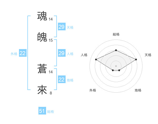 魂魄 蒼來さんの総格は51画の3点!