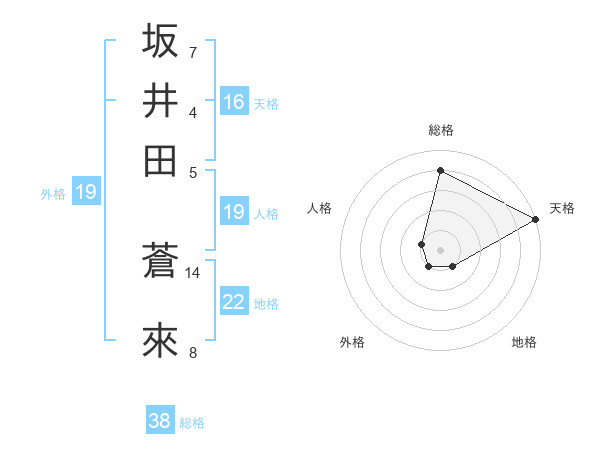 坂井田 蒼來さんの総格は38画の4点!