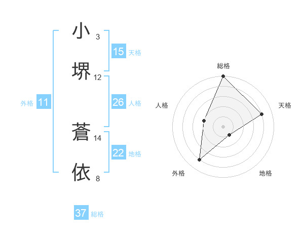 小堺 蒼依さんを姓名の画数から五運を鑑定