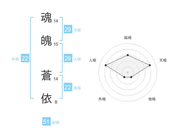 魂魄 蒼依さんの外格は22画の1点!