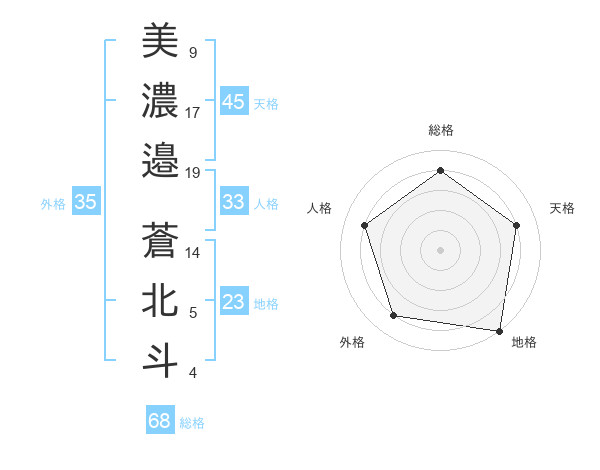 美濃邉 蒼北斗さんの総格は68画の4点!