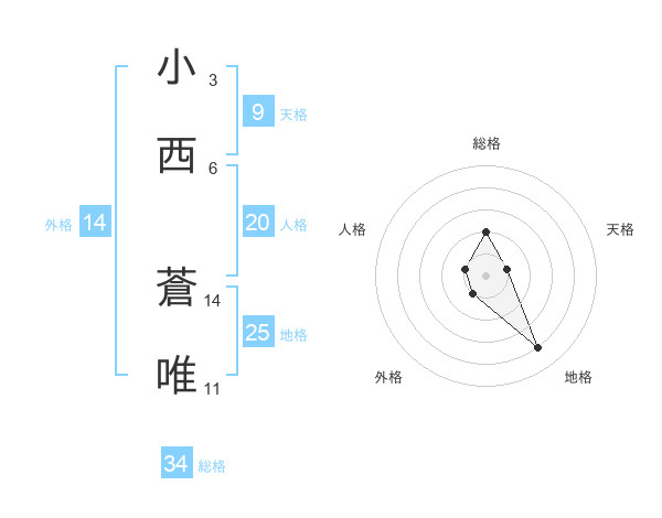 小西 蒼唯さんの外格は14画の1点!