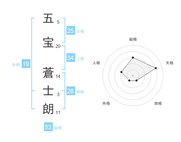 五宝 蒼士朗さんを姓名の画数から五運を鑑定