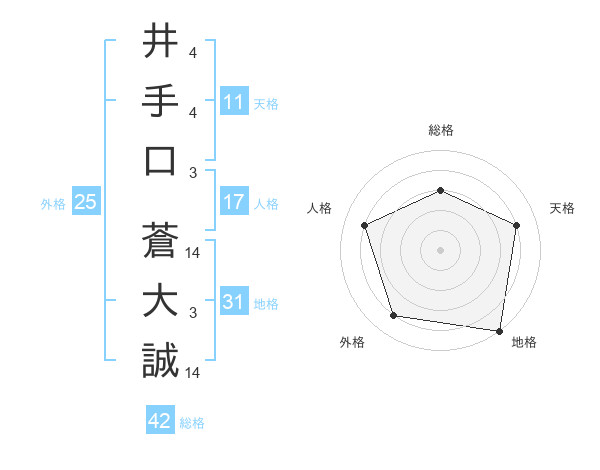 井手口 蒼大誠さんの総格は42画の3点!