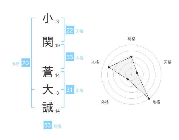 小関 蒼大誠さんを姓名の画数から五運を鑑定