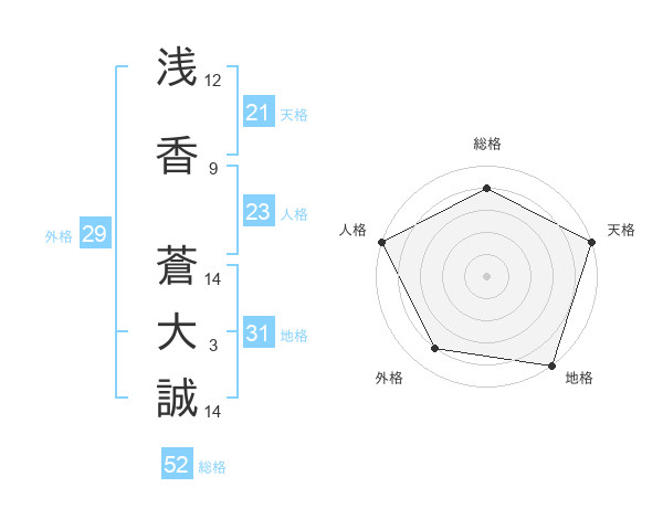浅香 蒼大誠さんの総格は52画の4点!