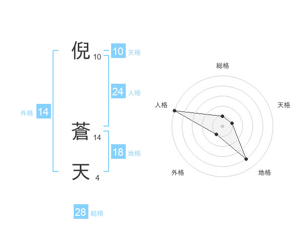 倪 蒼天さんの地格は18画の4点!