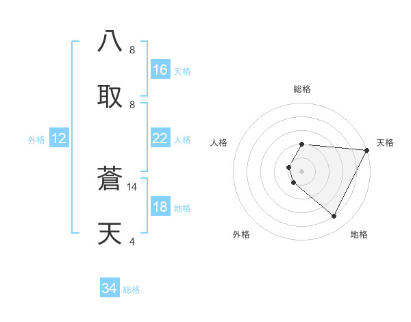 八取 蒼天さんの総格は34画の2点!