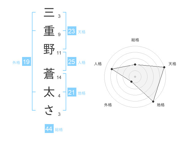 三重野 蒼太ささんを姓名の画数から五運を鑑定