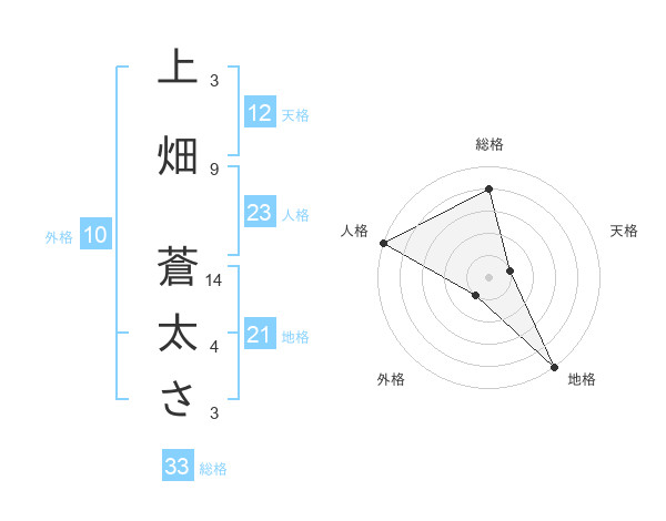 上畑 蒼太ささんを姓名の画数から五運を鑑定