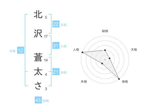 北沢 蒼太ささんを姓名の画数から五運を鑑定