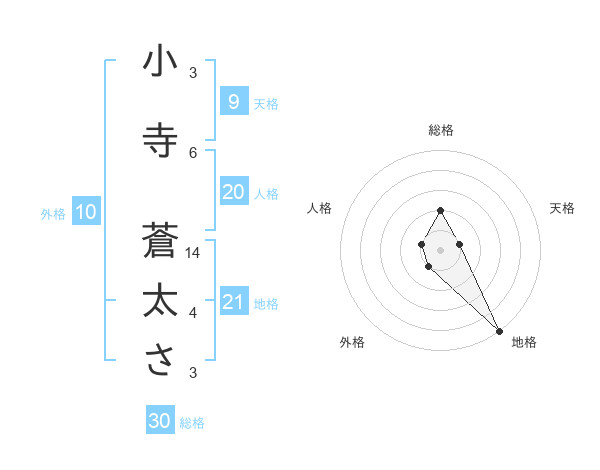小寺 蒼太ささんを姓名の画数から五運を鑑定