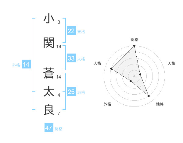 小関 蒼太良さんを姓名の画数から五運を鑑定