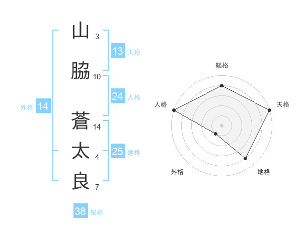 山脇 蒼太良さんを姓名の画数から五運を鑑定