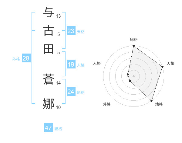 与古田 蒼娜さんを姓名の画数から五運を鑑定