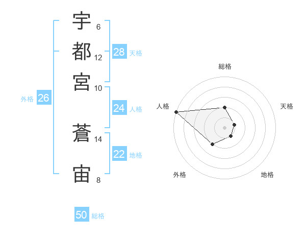 宇都宮 蒼宙さんの総格は50画の2点!