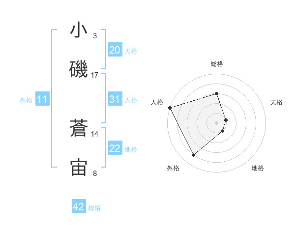 小磯 蒼宙さんの外格は11画の4点!