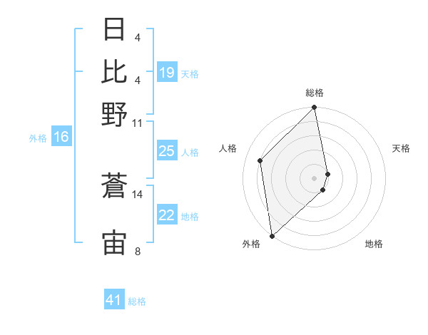 日比野 蒼宙さんの総格は41画の5点!