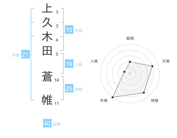 上久木田 蒼帷さんを姓名の画数から五運を鑑定