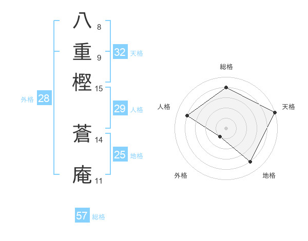 八重樫 蒼庵さんの総格は57画の4点!