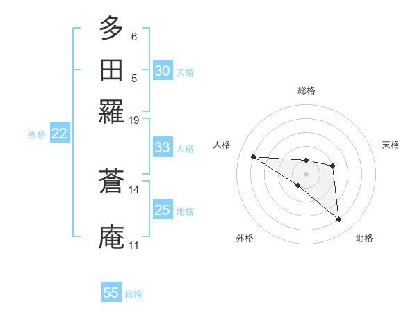 多田羅 蒼庵さんを姓名の画数から五運を鑑定
