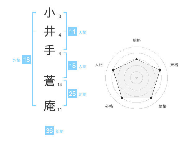 小井手 蒼庵さんの総格は36画の3点!