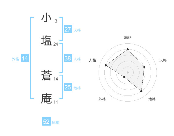 小塩 蒼庵さんの総格は52画の4点!