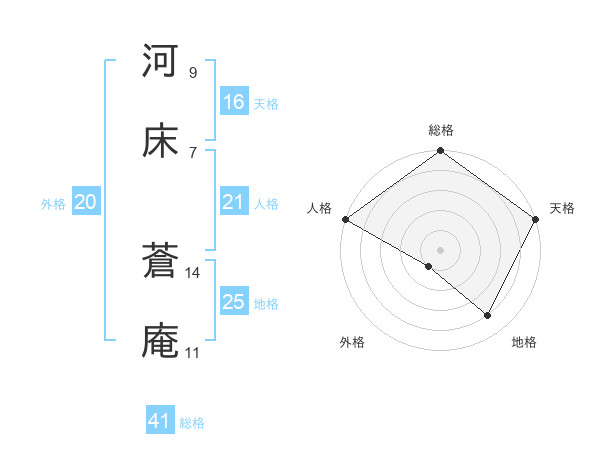 河床 蒼庵さんの総格は41画の5点!