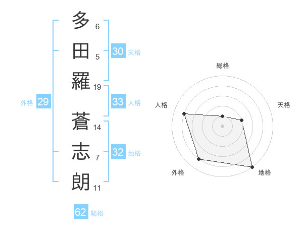 多田羅 蒼志朗さんを姓名の画数から五運を鑑定
