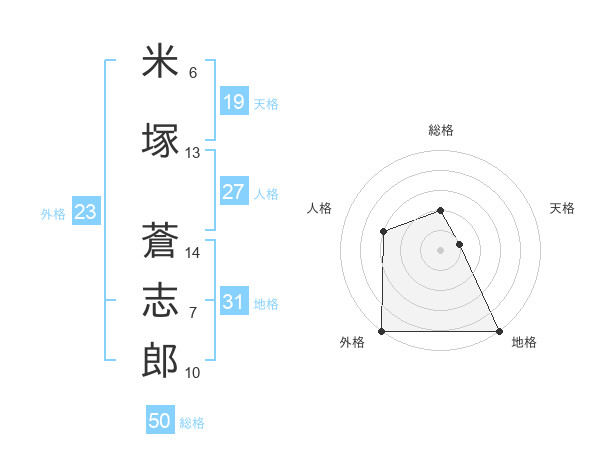 米塚 蒼志郎さんの総格は50画の2点