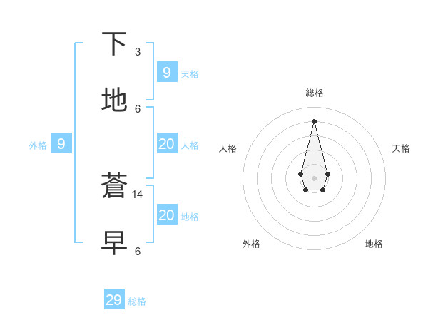 下地 蒼早さんを姓名の画数から五運を鑑定