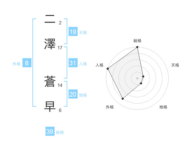二澤 蒼早さんの外格は8画の4点!