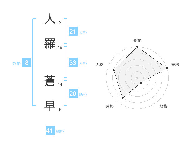 人羅 蒼早さんを姓名の画数から五運を鑑定