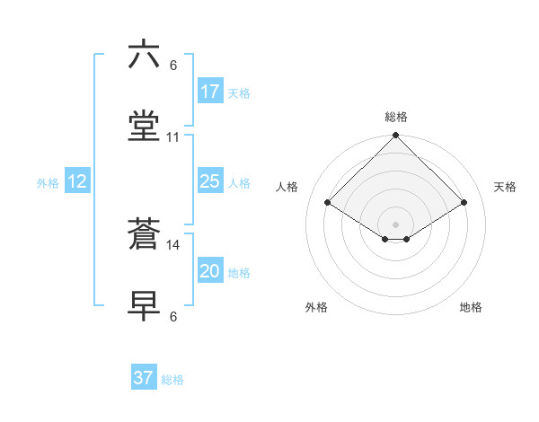 六堂 蒼早さんを姓名の画数から五運を鑑定
