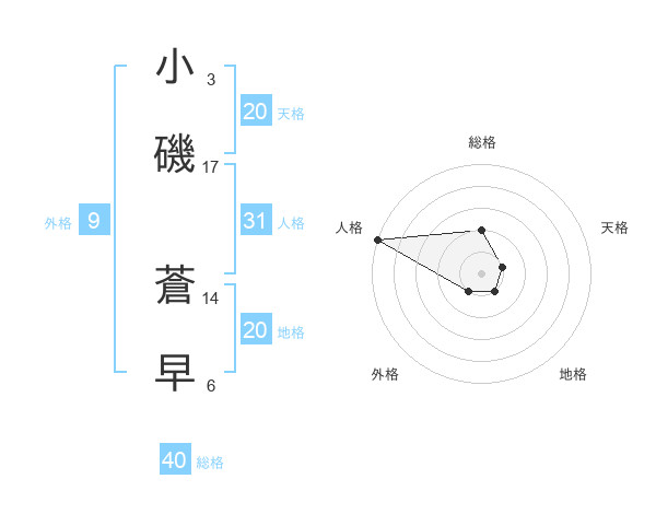 小磯 蒼早さんを姓名の画数から五運を鑑定