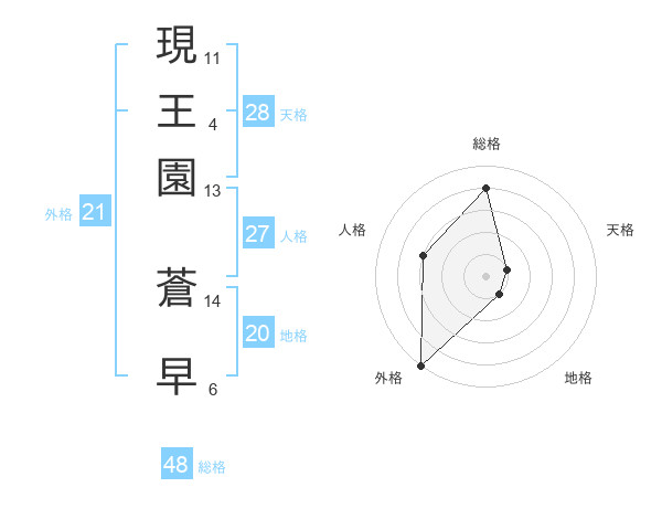 現王園 蒼早さんを姓名の画数から五運を鑑定