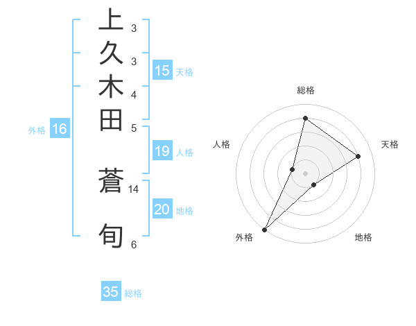 上久木田 蒼旬さんの総格は35画の4点!