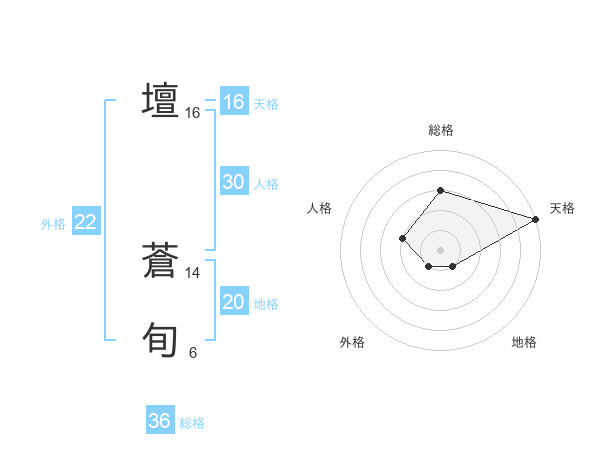 壇 蒼旬さんの天格は16画の5点!
