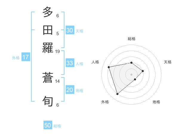 多田羅 蒼旬さんの総格は50画の2点!