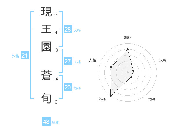 現王園 蒼旬さんを姓名の画数から五運を鑑定