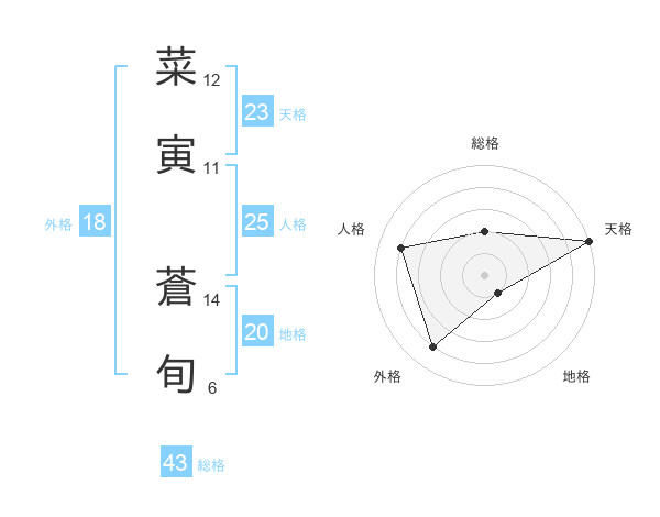 菜寅 蒼旬さんを姓名の画数から五運を鑑定