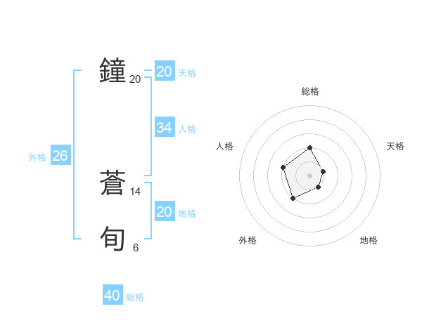 鐘 蒼旬さんの総格は40画の2点!