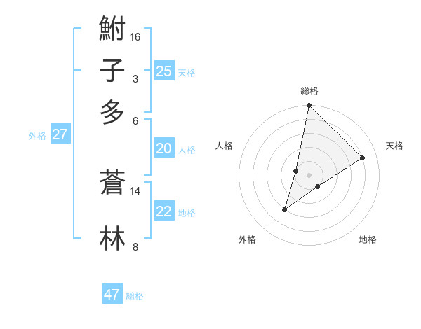 鮒子多 蒼林さんを姓名の画数から五運を鑑定