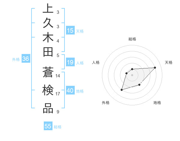 上久木田 蒼検品さんの総格は55画の1点