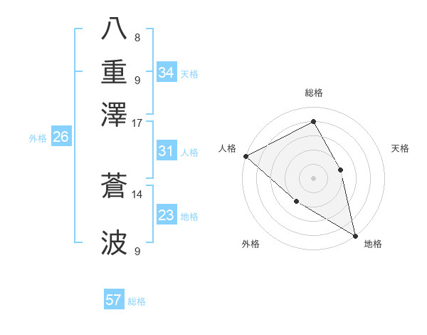 八重澤 蒼波さんを姓名の画数から五運を鑑定