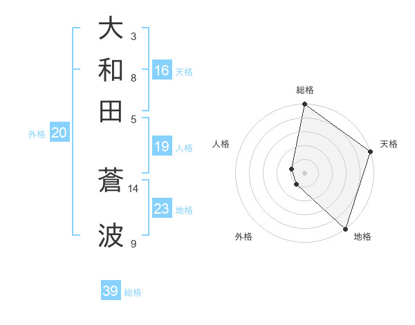 大和田 蒼波さんの総格は39画の5点!