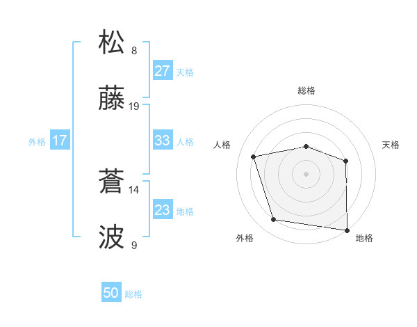 松藤 蒼波さんを姓名の画数から五運を鑑定