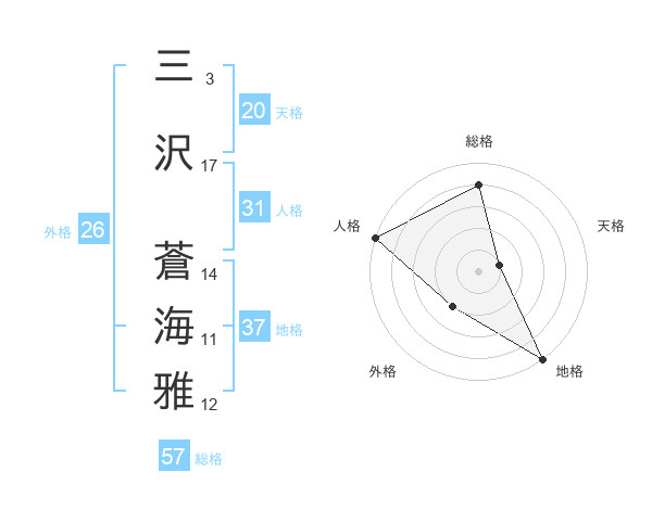 三沢 蒼海雅さんを姓名の画数から五運を鑑定