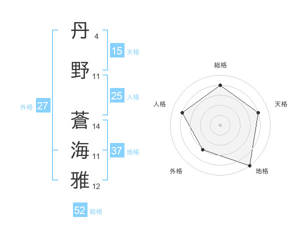 丹野 蒼海雅さんの総格は52画の4点!