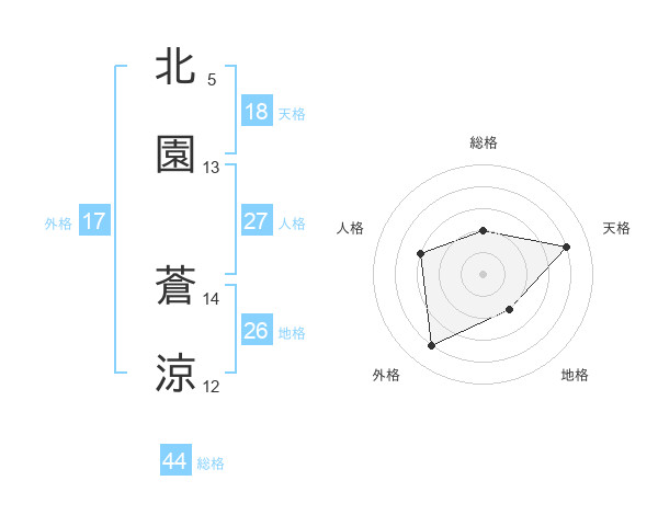 北園 蒼涼さんを姓名の画数から五運を鑑定